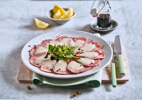 Semerrolle vom Jungbullen mit Thunfischcrème und Rucolasalat