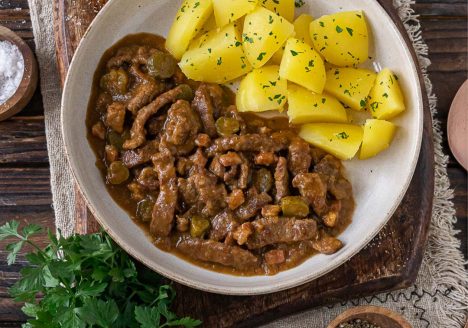 Zutaten 1 kg Rindfleisch aus der Oberschale 500 g Zwiebeln, in Scheiben geschnitten 300 g Bauchspeck, in Würfel geschnitten 200 g Essiggurken, in Scheiben geschnitten 3 EL mittelscharfer Senf 2 TL Speisestärke…22. August 2023 -