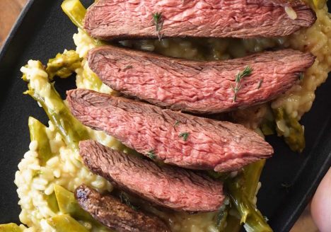 Bavette von Château Boeuf mit grünem Spargelrisotto (von marcelfulsche)