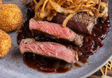 Zutaten Fleisch & Rotweinsoße 4 Entrecôte a 200–220 g von Château Boeuf Salz Schwarzer Pfeffer 4 angedrückte Knoblauchzehen 4 kleine Zweige Rosmarin Butterschmalz 1 rote Zwiebel 2 TL Tomatenmark 2 TL Puderzucker…1. Oktober 2025 -